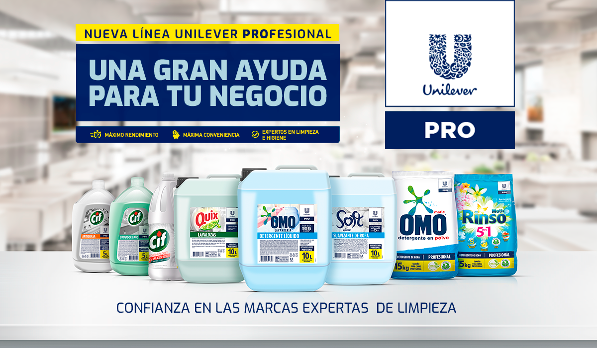 Unilever Profesional, es una nueva unidad de negocio enfocada en el desarrollo de productos para la limpieza e higiene institucional, que busca contribuir y potenciar el trabajo de hoteles, restaurantes, lavanderías y otras instituciones, aplicando toda la experiencia, innovación y recursos de nuestra compañía en el desarrollo conjunto de soluciones a medida para las necesidades del sector profesional.